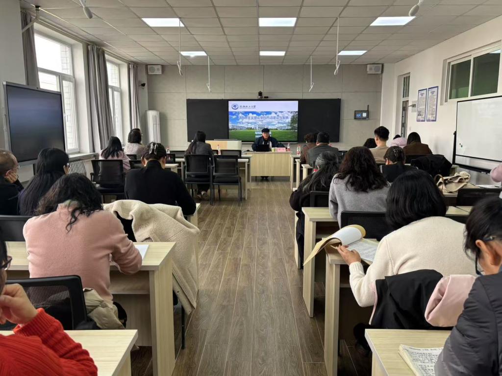 我校马克思主义理论学科内涵建设与发展研讨会近日在马院召开。会议特邀国内知名专家、东北大学博士生导师陈凡教授做学科建设指导讲座,马院领导班子及全体教师参会,会议由副院长薛孚主持。