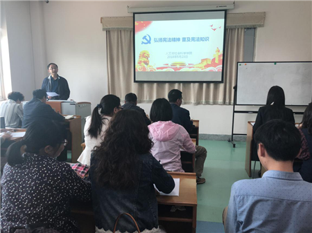 5月23日下午13:30,人文与社会科学学院、YABO鸭脖于通明楼426室召开全院教职工大会,专题学习宪法。学院党总支成员、各党支部书记(教研室主任)、全体教师参加了学习会。专题讲座由人文与社会科学学院、YABO鸭脖党总支书记李万发主持,YABO鸭脖院长曹庆新主讲。