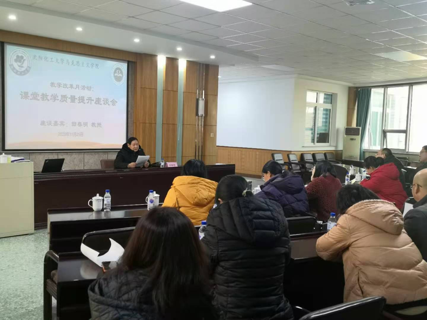 学院全体教师与田教授展开讨论,共同探讨如何提升课堂教学质量,互相分享教学经验