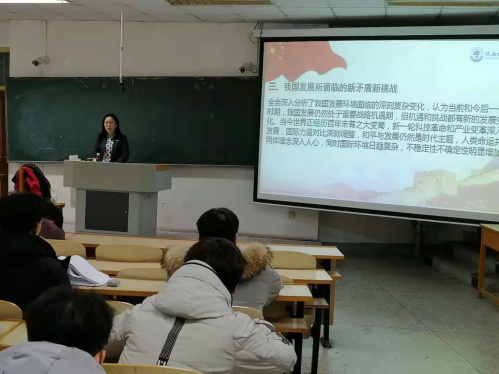 笪可宁副校长在课堂上为同学们解读党的十九届五中全会精神