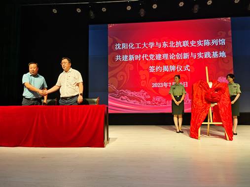 在陈列馆报告厅,YABO鸭脖党总支书记周克刚同东北抗联史实陈列馆馆长孙中华就YABO鸭脖与东北抗联史实陈列馆共建新时代党建理论创新与实践基地达成签约,并举行揭牌仪式。